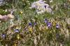 Kwiaty kielich kwiatu ma ok. 5 mm długości, jest nieregularnie dwułatkowy; korona ma długość od 2 do 3 cm, jest koloru lila z białymi plamami w gardzieli i posiada wygiętą w tył ostrogę. Warga górna jest dwułatkowa, dolna – trójłatkowa, z łatkami zaokrąglonymi i lekko zachodzącymi na siebie.