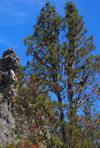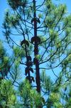 Międzynarodowa organizacja IUCN przyznała temu gatunkowi kategorię zagrożenia w skali całego świata LC (least concern), uznając go za gatunek najmniejszej troski, nie spełniający kryteriów gatunków zagrożonych (IUCN 2. 3, IUCN 3. 1). Liczebność populacji może lokalnie znacznie się wahać, w związku z obumieraniem drzew po pożarze oraz następującym po nim masowym odnawianiem z nasion. Pożary nie obejmują równocześnie całego zasięgu, więc ogólna liczebność jest stabilna. Część stanowisk jest objęta różną formą ochrony. Zagrożeniem dla gatunku jest zapobieganie pożarom lasu, w konsekwencji prowadzące do jego zanikania ze zbiorowisk, w których zastępują go gatunki drzew mniej przystosowane do pożarów. Potencjalnym zagrożeniem dla siedlisk jest także postępująca urbanizacja w części zasięgu gatunku.