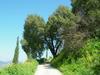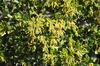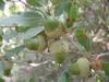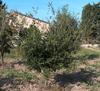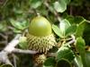 Zimozielone drzewo lub krzew o wysokości do 10 m i obwodzie pnia do 3 m. Liście sztywne, błyszczące, ciemnozielone i mają kolczaste ząbki na brzegach. Kwitnie od lutego do kwietnia. Roślina jednopienna: na tym samym drzewie występują zebrane w kotki kwiaty męskie i kwiaty żeńskie. Owalne żołędzie mają długość 2 cm i średnicę 1,5 cm i osadzone są w miseczkach pokrytych kolczastymi łuskami. Dojrzewają w 18 miesięcy po zapyleniu. Osiąga pionowy zasięg do 1200 m n.p.m. rośnie w lasach, zaroślach, półpustyniach. Występuje głównie na glebach kamienistych, na podłożu wapienno-dolomitowym, szczególnie na czerwonych glebach terra rossa.