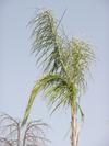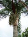 Drzewiasta palma osiągająca w swoim naturalnym środowisku wysokość do 18 m. Ma gładki jasnoszary pień, z którego wyrasta pióropusz pierzastych, ciemnozielonych liści. Kwiaty zebrane w żółte kwiatostany. Owoce do 2,5 cm długości, koloru pomarańczowego, zebrane w grona.