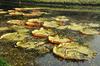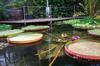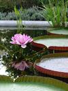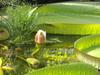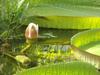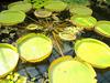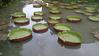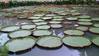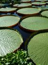 Liście liście pływające osiągają w ojczyźnie tego gatunku nawet do 400 cm średnicy (w uprawie do 200 cm). Brzeg o szerokości kilku cm wywinięty jest do góry, co chroni liść przed zalewaniem wodą i ograniczaniem wymiany gazowej. Wierzchnia strona liścia jest gładka i zielona, podczas gdy spód jest czerwony i mocno kolczasty (ochrona przed zgryzaniem). Liść od spodu wykształca listewki o wysokości ok. 6 cm tworzące użebrowanie wzmacniające konstrukcję liścia, chroniące przed złamaniem lub rozerwaniem blaszki liściowej. Listewki te zbudowane są z tkanki obfitującej w powietrze, tak że liść nie tylko doskonale pływa, ale wręcz unosi się lekko nad wodą (pod spodem zbiera się gaz wydzielany przez żywy liść). Na powierzchni liścia widoczne są drobne otworki stanowiące wloty kanalików odprowadzających wody opadowe zalewające powierzchnię liścia. Wielkość i specyficzna konstrukcja liścia zapewnia mu na tyle dużą wyporność, że znane są fotografie przedstawiające dzieci unoszone na liściach (wielkie liście w ojczyźnie tego gatunku potrafią unieść dorosłe osoby do 75 kg wagi). Roślina rozwijając się z nasienia wypuszcza początkowo liście wąskie, później strzałkowate, następnie jajowate (podobne do liści naszych grzybieni i dopiero później pojawiają się pierwsze liście wyżej opisane.