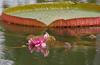 Kwiaty wynoszone są nad powierzchnię wody na długich szypułkach, pąk kwiatowy jest otulony czterema, silnie kolczastymi działkami. Kwiat osiąga 35 cm średnicy, rozwija się po południu i zamyka nad ranem. W trakcie kwitnienia wnętrze kwiatu jest o kilka stopni Celsjusza cieplejsze niż otoczenie i wydziela silną woń. Zwabione i zamknięte w kwiecie nad ranem owady (chrząszcze) uwalniane są po południu już obsypane pyłkiem. Rozkwitający kwiat początkowo jest biały, później różowawy. Po zapyleniu barwa kwiatów staje się intensywnie czerwonoróżowa, po czym kwiat więdnie, a skręcająca się szypułka wciąga go pod wodę, gdzie powstaje owoc i dojrzewają nasiona.