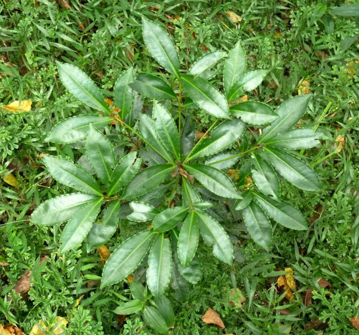 Ardisia crenata Sims – gatunek roślin z rodziny pierwiosnkowatych (Primulaceae). Występuje naturalnie we wschodnich Indiach, na Sri Lance, w Mjanmie, Chinach (w prowincjach Anhui, Fujian, Guangdong, Hajnan, Hubei, Hunan, Jiangsu, Jiangxi, Junnan, Kuangsi, Zhejiang oraz w południowo-zachodnim Tybecie), na Półwyspie Koreańskim, w Japonii, na Tajwanie, w Wietnamie, Laosie, Kambodży, Tajlandii, Malezji oraz na Filipinach. Ponadto został introdukowany w Stanach Zjednoczonych (w Alabamie, na Florydzie, w Georgii, na Hawajach, w Luizjanie, na Portoryko i w Teksasie), na francuskiej wyspie Reunion, na Mauritiusie, Seszelach, w Indonezji (na Małych Wyspach Sundajskich) oraz Australii (w stanach Nowa Południowa Walia i Queensland). Gatunek uznany został za jeden ze 100 najbardziej inwazyjnych gatunków na świecie.