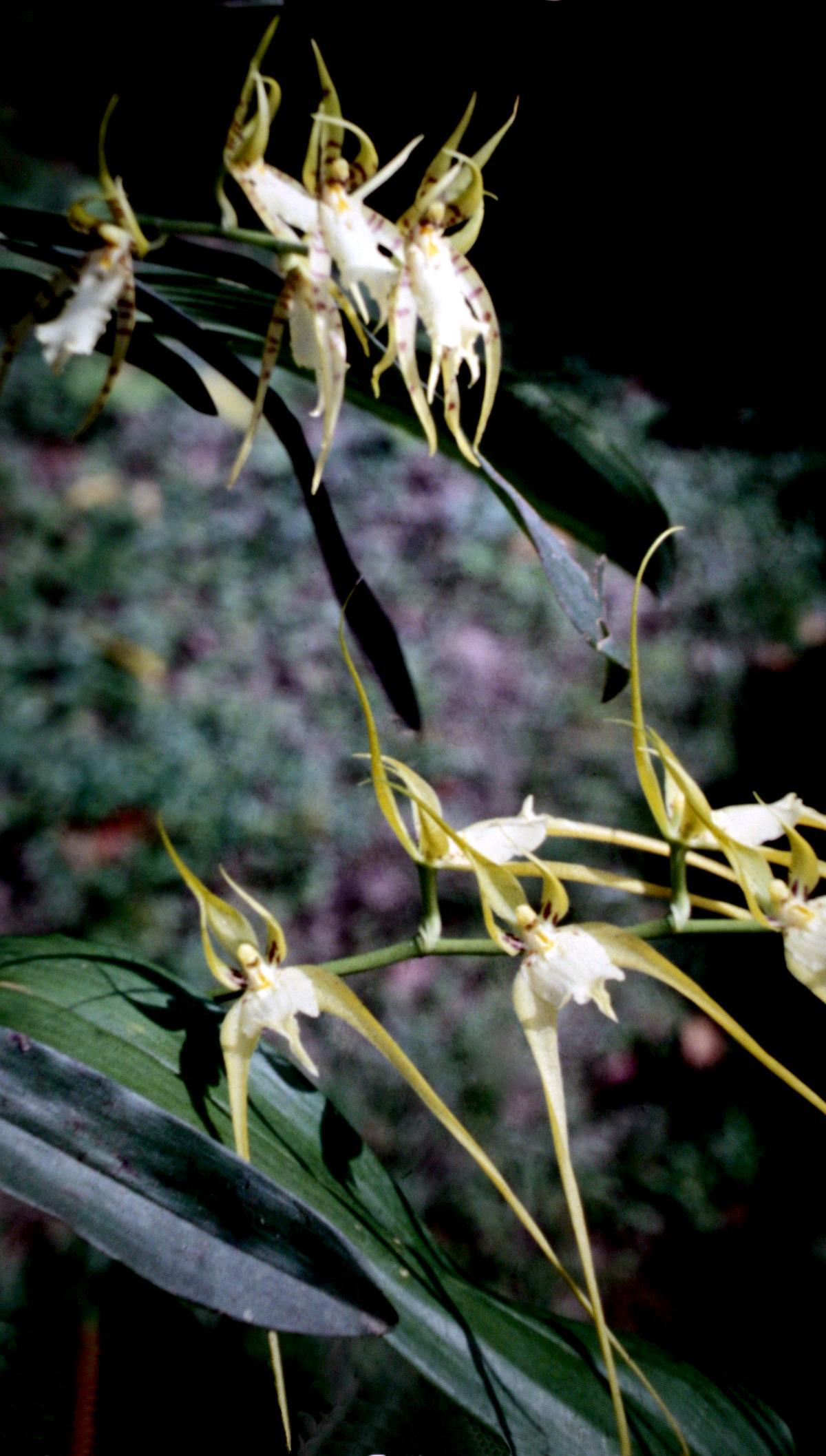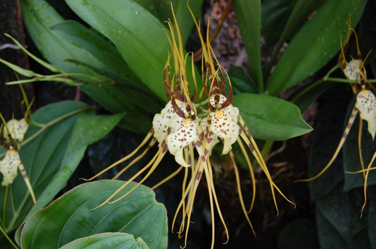 Brassia caudata – gatunek epi- i litofitycznych roślin z rodziny storczykowatych (Orchidaceae). Jest rodzimy w międzyzwrotnikowej części Ameryki Północnej i Południowej; na północy od: Florydy, Kuby, Dominikany, Haiti, Meksyku, poprzez: Jamajkę, Trynidad i Tobago, Gwatemalę, Belize, Honduras, Nikaraguę, Kostarykę, Panamę, po: Kolumbię, Wenezuelę, Gujanę Francuską, Surinam, Gujanę, Ekwador, Peru, Boliwię i Brazylię. Rośnie na stanowiskach o ograniczonym nasłonecznieniu i temperaturze nieprzekraczającej 20–24°C sięgając w górach do 1800 m n.p.m., przy czym na Kubie nie odnotowano go powyżej 300 m n.p.m.