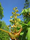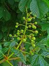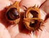 Surowiec zielarski Kwiaty (Flos Hippocastani), kora (Cortex Hippocastani), nasienie (tzw. kasztan; Semen Hippocastani), niedojrzały owoc kasztanowca (Fructus Hippocastani immaturus). W lecznictwie stosowane są dwie substancje – escyna (mieszanina saponin pozyskiwana z nasion) i eskulina (kumaryna izolowana z kory). W czasie kwitnienia zbierane są zarówno kwiaty (tylko rozwinięte) i liście. Kwiaty pozyskuje się ścinając całe kwiatostany, a następnie obrywa pojedynczo i suszy. Korę pozyskuje się z gładkich 3–5-letnich pędów, a nasiona po dojrzeniu. Niedojrzałe owoce zrywa się w lipcu. Działanie Escyna ma potwierdzone działanie zmniejszające przepuszczalność ścian naczyń krwionośnych i zwiększające ich elastyczność, a tym samym wpływa na nie wzmacniająco. Zwiększa napięcie ścian żył, działa przeciwzapalnie i przeciwobrzękowo, poprawia krążenie obwodowe, ukrwienie skóry i mięśni gładkich. Mechanizm działania polega na inhibicji (zwalnianiu) działania hialuronidazy, który to enzym odpowiada za degradację proteoglikanów, które z kolei nadają sztywność i napięcie ścianom naczyń krwionośnych. Zwiększoną aktywność hialuronidazy stwierdza się u pacjentów z żylakami. Skuteczność escyny w łagodzeniu objawów klinicznych u chorych z przewlekłą niewydolnością żylną została potwierdzona w badaniach randomizowanych. Udokumentowano zmniejszenie objętości kończyny, łagodzenie czucia bólu i objawów świądu. Preparaty z kory zawierające eskulinę i inne kumaryny oraz taniny mają silniejsze od escyny działanie przeciwysiękowe i przeciwzapalne. Eskulina uszczelnia włosowate naczynia krwionośne i ma silne działanie chroniące przed promieniowaniem ultrafioletowym. Kwiaty stosowane w formie naparów zawierają głównie flawonoidy i poprawiają stan naczyń włosowatych (zmniejszają ich przepuszczalność i kruchość). Zastosowanie lecznicze Preparaty z escyną stosowane są przy żylakach kończyn dolnych i odbytu (już od XIX wieku), przy stanach zapalnych naczyń krwionośnych, stanach pourazowych i pooperacyjnych, obrzękach różnego pochodzenia i zaburzeniach krążenia krwi. Pomocniczo stosowana jest przy zaburzeniach mózgowych wywołanych różnymi przyczynami (udarem, urazem lub stanem zapalnym), w obrzęku mózgu, przy bólach spowodowanych chorobami kręgosłupa. Dzienna dawka lecznicza escyny wynosi 15–30 mg. Preparaty z kory z eskuliną stosowane są także przy leczeniu żylaków odbytu, a poza tym dla hamowania drobnych krwawień, w nieżytach układu pokarmowego, przy biegunkach, owrzodzeniach jelita grubego. Okłady z naparów z kwiatów stosowane są zewnętrznie przy otarciach, oparzeniach, odmrożeniach, ogniskowych stanach zapalnych naczyń włosowatych i różnych kontuzjach. Nalewka z kwiatów kasztanowca stosowana była jako afrodyzjak. W ziołolecznictwie ludowym w Polsce gatunek ten stosowany był sporadycznie. Nalewki używano zewnętrznie przy żylakach w postaci kompresów, ale też przy chorobach zakaźnych i reumatycznych. Interakcje Escyna może nasilić działanie doustnych leków przeciwzakrzepowych i nefrotoksyczne działanie aminoglikozydów. Przeciwwskazania i działania niepożądane Preparaty z kasztanowca nie mogą być stosowane przez osoby z ostrą niewydolnością nerek i przez kobiety w pierwszym trymestrze ciąży (później i w czasie karmienia stosowane mogą być tylko na zalecenie lekarza). Nie należy używać preparatów z kasztanowca na uszkodzoną skórę i rany; powinno się unikać kontaktu takich specyfików z oczami i błonami śluzowymi. U niektórych osób mogą wystąpić reakcje uczuleniowe i zaburzenia ze strony układu pokarmowego. Sporadycznie zdarza się alergia na pyłek kasztanowca, zwłaszcza u osób mieszkających blisko tych drzew, np. przy alejach obsadzanych kasztanowcami. Ilości pyłku kasztanowca w powietrzu są jednak znikome ze względu na to, że przenoszony jest on zwykle przez owady, a nie wiatr.
