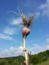 Grupa odmian Longicuspis w klasyfikacji według Maassa i Klaasa (1995) wskazuje na formę pierwotną, od której pochodzą czosnki uprawne z pozostałych grup odmian. Formą tą jest czosnek rosnący dziko w Azji centralnej, opisywany nazwą naukową Allium longicuspis Rgl. Współczesne odmiany czosnku pospolitego powstały w wyniku trwającej kilka tysięcy lat uprawy i selekcji roślin prowadzonej przez rolników. Pod względem genetycznym czosnek pospolity jest identyczny ze swym dzikim prekursorem i genetycy kwestionują słuszność wyodrębniania obu taksonów w randze odrębnych gatunków. Preferowano rośliny wytwarzające cebulki, przez co obecnie uprawiany czosnek zużywa zapasy substancji odżywczych do produkcji cebulek i nie zawiązuje nasion. Jednak naukowcom z Izraela, manipulując w laboratorium długością dnia i temperaturą, udało się doprowadzić do kwitnienia i wytworzenia nasion. Odkrycie to pozwala zwiększyć genetyczne zróżnicowanie czosnku. Podobne nadzieje wiązane są z odkryciem płodnego klonu czosnku w Meksyku.