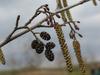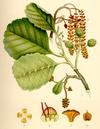 Megafanerofit. Roślina jednopienna z oddzielnymi kwiatostanami męskimi i żeńskimi, rozwijającymi się przed liśćmi, bardzo wczesną wiosną. Kwitnie od marca do kwietnia, wiatropylna. Owocować po raz pierwszy zaczynają drzewa 20–30-letnie. Nasiona wysypują się zimą. Drewno nie zróżnicowane na biel i twardziel. Liczba chromosomów 2n = 28. Do największych szkodników olszy czarnej należą: Kloszowiec olchowy (Eriophyes inangulis) – roztocz, przedstawiciel roślinożernych szpecieli, żeruje tylko na olszy czarnej. Objawem żerowania są kloszowate wypukłości w kątach nerwów wzdłuż nerwu głównego. Kolbowiec olchowy (Eriophyes laevis) – przedstawiciel szpecieli, żerujący na liściach. Objawem żerowania są brodawkowate wyrośla na wierzchniej stronie blaszki liściowej, o wysokości 2–3 mm. Wyrośla początkowo są jasnozielone, następnie czerwienieją, a w lipcu brązowieją. Liście, na których żerują roztocza wcześniej opadają. Pilśniowiec olchowy (Aceria brevitarsus) – roztocz, żerujący na spodniej stronie liści, gdzie w miejscach żerowania tworzy się srebrzysta pilśń. Na wierzchniej stronie liścia widać jaśniejsze wypukłości. Hurmak olchowiec (Agelastica alni) – na liściach żerują larwy i postać dorosła chrząszcza. Larwy pojawiają się od czerwca do lipca i żerują przez ok. 3 tygodnie. Zjadają miękisz, a następnie wygryzają blaszkę między nerwami. Dorosłe osobniki żerują krótko. Zwijacz brzozowiec (Deporaus betulae) – na liściach żerują larwy i osobniki dorosłe tego chrząszcza. Miniarka brzozówka (Agromyza alnibetulae) – larwy tej muchówki żerują także na olszach. Objawem żerowania jest długa i kręta mina widoczna na blaszce liściowej, powstająca od szczytu liścia. Zwiotka olszowa (Fenusa dohrnii) – błonkówka, której larwy żerują wewnątrz liści. Objawem żerowania są pęcherzykowate, brązowe miny, zlokalizowane między dwoma nerwami bocznymi. W wyniku żerowania blaszka liściowa ulega zniekształceniu i często liść opada. Zżernica olszowa (Heterarthrus vagans) – na olszy występuje rzadziej niż zwiotka olszowa. Larwy żerując wewnątrz liści także tworzą miny. Zdobniczka podlistnoolchowa (Pterocallis alni) – mszyca żerująca pojedynczo lub w małych grupach na spodniej stronie liści. Na blaszce liściowej widoczne są żółte plamy. Miodówka olszowa (Psylla alni) – larwy i osobniki dorosłe tego pluskwiaka żerują na pędach okryte kłaczkowatą wełną. Wysysają soki, ograniczając wzrost pędów i zmniejszając ich turgor. Pienik olchowiec, pienik olszowiec (Aphrophora alni) – pluskwiak, którego larwy od kwietnia-maja żerują na szyjkach korzeniowych. Dorosłe osobniki żerują od czerwca lub lipca do jesieni. Nakłuwają tkankę na pędach i wysysają z łyka sok. W miejscach żerowania powstają pierścieniowate zgrubienia, pędy są osłabione i łamliwe.