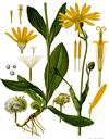 Własności lecznicze arniki znane były od bardzo dawna. O leczniczym zastosowaniu tej rośliny pisała żyjąca na przełomie XI i XII wieku Hildegarda z Bingen.Surowiec zielarski Kwiat arniki (Arnicae flos) – wysuszone, całe lub częściowo rozpadnięte koszyczki o zawartości nie mniej niż 0,40% sumy laktonów seskwiterpenowych. Działanie Zewnętrznie na krwiaki, stłuczenia, skręcenia, zwichnięcia, obrzęki pourazowe, oparzenia, ukąszenia owadów, dolegliwości reumatyczne, a także do płukania jamy ustnej. Koszyczki kwiatowe mają liczne substancje czynne o działaniu przeciwzapalnym, przeciwreumatycznym i antyseptycznym. Wewnętrznie w stanach zapalnych dróg moczowych, osłabieniu, zaburzeniach krążenia, zapaleniu żył, pękaniu naczyń krwionośnych, nadciśnieniu, zakrzepach naczyń krwionośnych, miażdżycy. Zbiór i suszenie Surowiec zbiera się w początkowym okresie kwitnienia rośliny i suszy w warunkach naturalnych. Zbioru należy dokonać przy bezdeszczowej pogodzie. Przeciwwskazania Nie należy stosować arniki wewnętrznie w ostrych nieżytach żołądka i jelit, po zawale serca i podczas leczenia niektórymi środkami nasennymi (strofantyna i wyciągi z naparstnicy). Przy użyciu zewnętrznym przeciwwskazaniem są otwarte rany, rozległe otarcia naskórka, zapalenie skóry oraz oparzenia III stopnia.