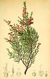 Wrzos jest rośliną leczniczą, na którą zapotrzebowanie jest zmienne i z naddatkiem zaspakajane z bogatych zasobów naturalnych. Wielkość pozyskania jest na tyle nieduża, że nie wpływa na zasoby gatunku. Po raz pierwszy jako roślina lecznicza opisany został w XV wieku przez Hieronymusa Brunschwiga. W następnym wieku wspominany był przez Pierandreę Matthioliego, Hieronima Bocka i Theodorusa Tabernaemontanusa. Wykorzystywany jest w lecznictwie ludowym i w homeopatii. Należy do ziół raczej rzadko wykorzystywanych.Surowiec zielarski Ziele wrzosu (Herba Calunae, dawniej Herba Ericae), kwiaty wrzosu (Flos Callunae, dawniej Flores Ericae). Zbiór i suszenie Ziele i kwiaty pozyskuje się w początkach kwitnienia, pod koniec sierpnia, ścina się gałązki z kwiatami w połowie ich wysokości. Kwiaty zbiera się ręcznie. Surowiec suszy się w miejscach przewiewnych i zacienionych. Same kwiaty suszy się w cienkich warstwach na powietrzu lub w suszarniach w temperaturze około 40 °C, ziele w suszarniach w temperaturze do 60 °C. Kwiaty przechowuje się w skrzynkach wykładanych papierem lub workach w miejscach suchych i przewiewnych. Prawidłowo wysuszony surowiec powinien zachować różowofioletową barwę kwiatów. W celu uzyskania 1 kg suszu potrzeba około 4,5 kg świeżych kwiatów, a w przypadku ziela – 3,5 kg pędów. Działanie Przeciwzapalne (zwłaszcza na cewkę moczową), moczopędne (dzięki flawonoidom), przeciwreumatyczne, uspokajające i napotne. Wrzos wzmagać ma także wydzielanie soku żołądkowego za sprawą związków goryczowych i działać słabo rozkurczowo. W lecznictwie ludowym stosowany był zwłaszcza w celu odkażania dróg moczowych i jako środek uspokajający przy bezsenności. Działanie przeciwbakteryjne jest skuteczne przy alkalicznym odczynie moczu, bowiem wówczas w wyniku hydrolizy arbutyna ulega rozkładowi na hydrochinon. Przeciwbakteryjnie działają także związki polifenolowe. Hamująco na rozwój flory bakteryjnej w przewodzie pokarmowym wpływają garbniki. Ziele stosuje się przy schorzeniach dróg moczowych, chorobach nerek i przewodu pokarmowego, przeroście prostaty oraz pomocniczo przy chorobach reumatycznych, chorobach wątroby i bezsenności, przy zaburzeniach krążenia i menstruacji podczas przekwitania. W lecznictwie ludowym kąpiele z wrzosu stosowano także przy krzywicy, a ziele przy schorzeniach dróg oddechowych i chorobach reumatycznych. Ziele wrzosu działać ma także ściągająco i odkażająco na skórę i wykorzystywane jest w tym zakresie w kosmetyce. Skuteczność preparatów ziołowych z wrzosu nie jest udowodniona. Dawkowanie Z kwiatów sporządza się odwar (1–1,5 łyżki surowca na 250 ml wody). Pije się ok. 100 ml odwaru 2–3 razy dziennie. Odwar stosowany po posiłku stosuje się jako środek moczopędny i przeciwzapalny dla dróg moczowych, a przed posiłkiem przy problemach z układem pokarmowym. W ziołolecznictwie wrzos stosowany jest jednak najczęściej w mieszankach z innymi, podobnie działającymi ziołami. Zastosowanie w weterynarii Regionalnie w lecznictwie ludowym podawano napar z ziela wrzosu krowom chorującym na pryszczycę.