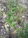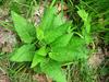 Liście na spodniej stronie gęściej owłosione, szarozielone. Liście odziomkowe i dolne łodygowe z oskrzydlonymi ogonkami oraz blaszką jajowatą, w nasadzie uciętą, zaokrągloną lub sercowatą. Brzeg blaszki karbowanopiłkowany. Wyższe liście siedzące i nasadą obejmujące łodygę, ku górze łodygi coraz mniejsze i węższe.