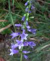 Kwiaty kwiatostan kłosokształtny, wydłużony, utworzony z licznych kwiatów na krótkich szypułkach, wspartych lancetowatymi przysadkami, zwykle krótszymi od kwiatów. Działek kielicha pięć, lancetowate, nieco odstające od korony. Korona niebieska, stożkowato dzwonkowata, długości 1,5–2,5 cm. Rozcięta co najmniej do 1/3 na pięć ostrych i dość wąskich łatek. Pręcików pięć. Słupek dolny z szyjką o trzech znamionach.