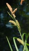 Występuje na podmokłych siedliskach, głównie szuwarach niskoturzycowych, także w olsach. W klasyfikacji zbiorowisk roślinnych gatunek charakterystyczny dla związku Magnocaricion oraz zespołu szuwaru turzycy brzegowej Caricetum ripariae.