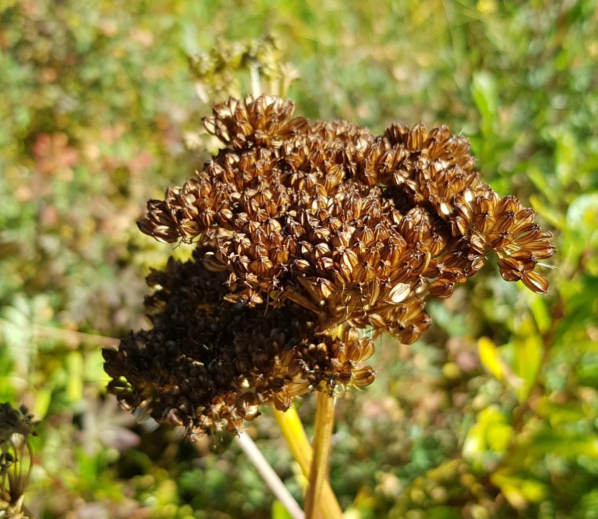 Owoce rozłupnia rozpadająca się na dwie rozłupki o długości 5 mm i szerokości do 3 mm. Są one nagie, jajowate, połyskujące, spłaszczone od strony grzbietowej, z 5 oskrzydlonymi żebrami, z których dwa brzeżne są dwa razy wyższe od żeber grzbietowych.