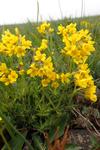 Kwiaty zebrane po 8–16 w luźny, baldachogroniasty kwiatostan rozwijający się na szczycie głąbika osiągającego do 8, rzadziej 10 cm wysokości. Głąbik bywa nagi lub okryty długimi włoskami. Kielich złożony z 4 jajowatych działek o długości 3 mm, na brzegach przejrzystych. Cztery płatki korony są jasnożółte, jajowate i osiągają do 6 mm długości. Pręciki osiągają do 3 mm długości, słupek do 0,7 mm długości.