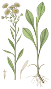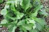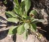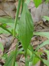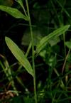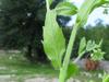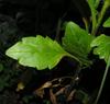 Liście dolne są odwrotnie jajowate, lub eliptyczne, gruboząbkowane, o nasadzie klinowato zbiegającej w długi ogonek. Liście górne szeroko lancetowate lub lancetowate, z nielicznymi, grubymi ząbkami lub prawie całobrzegie.