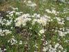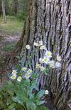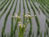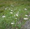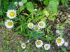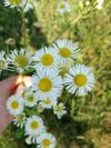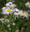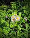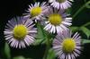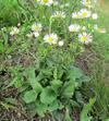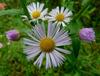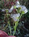 Kwiaty kwiaty zebrane w liczne koszyczki, te zaś z kolei w kwiatostan złożony mający postać baldachokształtnej wiechy. Koszyczki mają średnicę wraz z kwiatami języczkowymi sięgającą do 2–3 cm. Szczytowy koszyczek wyrasta niżej od pozostałych. Okrywa w nasadzie nieco zwęża się. Listki okrywy tworzą 2–3 szeregi, wszystkie są niemal tej samej długości, są ostro zakończone, nagie lub słabo owłosione. Brzeżne kwiaty języczkowe są czerwonoliliowe lub białe (rzadziej), tworzą dwa szeregi i wszystkie są kwiatami żeńskimi. Długość kwiatów języczkowych jest równa średnicy koszyczka i sięga ok. 1 cm. Wewnątrz koszyczka znajdują się żółte obupłciowe kwiaty rurkowe.
