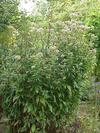 Bylina, hemikryptofit. Kwitnie od lipca do września. Nasiona są rozsiewane przez wiatr (anemochoria). Siedlisko: rośnie nad brzegami wód i rowów, na wilgotnych łąkach oraz na skrajach wilgotnych lasów i w zaroślach. W klasyfikacji zbiorowisk roślinnych gatunek charakterystyczny dla zespołu (Ass.) Calystegio-Eupatorietum i wyróżniający dla związku (All.) Atropion belladonnae. W niektórych ujęciach wyróżniany jest też zespół sadźca konopiastego Eupatorietum cannabini, dla którego także jest gatunkiem charakterystycznym. Liczba chromosomów 2n = 20.