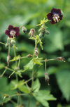 Zastosowanie. Ze względu na swoje ładne kwiaty jest uprawiany jako ogrodowa roślina ozdobna. Oprócz typowej formy gatunku uprawiane są odmiany i kultywary o bardziej ozdobnych kwiatach, istnieją też odmiany o barwnych liściach. Nadaje się do ogrodów skalnych, na rabaty i jako roślina okrywowa. Odmiana Geranium phaeum var. lividum ma kwiaty bladoróżowe, kultywar 'Lily Lovell' kwiaty duże i białe, a 'Variegatum' liście żółto obrzeżone z różowymi plamami. Uprawa. Najlepiej rośnie na słonecznym stanowisku i wlgotnej, ale przepuszczalnej ziemi. Rozmnaża się go z nasion wysiewanych wiosną lub przez podział rozrośniętych kęp jesienią.