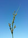 Bylina. Kwitnie od czerwca do września. Rośnie na wilgotnych łąkach, pastwiskach i przy brzegach wód. Jest gatunkiem charakterystycznym muraw zalewowych ze związku Agropyro-Rumicion crispi (głównie w zespole Blysmo-Juncetum compressi).