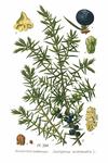 Jałowiec był ważną rośliną leczniczą w wielu kulturach, na ziemiach polskich należał do roślin stosowanych często w ziołolecznictwie. Leki z jałowca można przyrządzać na wiele sposobów: jako napary, wyciągi wodne i nalewki, syropy, wino i piwo jałowcowe czy nawet powidła. Pąki jałowca wykorzystywane są także w gemmoterapii.Historia Lecznicze właściwości jałowca prawdopodobnie wykorzystywane były w północnej i środkowej Europie już w okresie prehistorycznym. Pedanios Dioskurydes opisuje jałowca w De Materia Magica pod nazwą Arkeothos mikra jako lek działający rozgrzewająco, moczopędnie i łagodnie ściągająco, dobry dla żołądka, w przypadku dolegliwości w klatce piersiowej i kaszlu. Indianie Ameryki Północnej jedli szyszkojagody przy infekcjach dróg moczowych. Zachodnie plemiona indiańskie stosowały napar z szyszkojagód jałowca i kory z korzenia berberysu do leczenia cukrzycy. Indianie z północno-zachodnich wybrzeży Ameryki Północnej stosowali wywary z jałowca podczas przeziębienia, grypy, zapalenia stawów, bóli mięśni i problemów z nerkami. W Europie w okresie średniowiecza stosowano szyszkojagody jako lek uniwersalny na wszelkie dolegliwości. Hildegarda z Bingen zalecała je podczas leczenia chorób płuc, wątroby i nerek. Z czasem poza szyszkojagodami zaczęto wykorzystywać do celów leczniczych także: liście, zielone pędy, drewno i smołę. W Polsce w XIX w. i początku XX w. powszechnie pito odwar z szyszkojagód przy zatrzymaniu moczu i puchlinach. Dojrzałe szyszkojagody spożywane na czczo miały być pomocne także przy trawieniu. Jałowiec stosowany był przy kolkach, w celu „oczyszczenia krwi”, przy zatrzymaniu okresu, niekiedy także przy suchotach. W czasach epidemii (np. cholery) okadzano mieszkania jałowcem. Niekiedy przykładano jałowiec na miejsca opuchnięte. Zewnętrznie preparaty z jałowca stosowano przy nerwobólach, zapaleniu korzonków nerwowych, artretyzmie. Działanie Olejek jałowcowy ma działanie grzybobójcze i antybakteryjne, jednak nie działa znacząco na: pałeczkę ropy błękitnej, Candida albicans, gronkowca złocistego i pałeczkę okrężnicy (choć są badania wskazujące na istotne działanie antybakteryjne także dla tych dwóch ostatnich gatunków). Zalecane jest stosowanie jałowca po leczeniu antybiotykiem zakażeń dróg moczowych, co zapobiega nawrotom zakażeń i niszczy pozostałe bakterie, odporne na antybiotyki. Wskazany jest zwłaszcza przy antybiotykoopornych zakażeniach. W monografii przygotowawczej działanie dyspeptyczne preparatów z jałowca jest jedynym wymienionym. Flawonoidy, a w mniejszym stopniu olejek eteryczny z zawartym w nim terpinenolem, działać mają także moczopędnie (działanie takie potwierdzono w badaniach na szczurach). Uważa się, że działanie spazmolityczne (rozkurczające mięśnie gładkie) jest wynikiem drażniącego działania olejku, powodującego też w efekcie przekrwienie miąższu nerek. W efekcie stosuje się jałowiec przy dolegliwościach wiążących się z zatrzymywaniem wody i jonów sodu przy niedomaganiu nerek. Wyciągom z szyszkojagód przypisuje się także zwiększanie wydzielania żółci i soku żołądkowego. Pobudzać też mają perystaltykę, wydzielanie potu i rozszerzać naczynia włosowate skóry powodując jej zaczerwienienie. Z powodu zawartości w olejku pinenu i innych terpenów działa on także drażniąco na skórę. Olejek jałowcowy wchodzi w skład maści rozgrzewających stosowanych w bólach reumatycznych i przy nerwobólach. Surowiec zielarski i preparaty z jałowcem Szyszkojagody w piśmiennictwie zielarskim zwykle określane mianem owoców lub jagód i stąd nazwa naukowa: Fructus Juniperi oraz Bacca Juniperi, według nowych wydań Farmakopei Europejskiej – Juniperi pseudo-fructus. Wykorzystuje się także olejek jałowcowy (Oleum Juniperi, według FE – Juniperi aetheroleum). Surowce te wchodzą w skład preparatów jednoskładnikowych (np. „Cholesol”) oraz mieszanek ziołowych (np. „Cholagoga I” i „Cholagoga II”). Olejek w preparatach stosowanych do wcierań kojących zwykle stosuje się w mieszankach z olejkiem lawendowym i rozmarynowym. Ze względu na silne działanie, często w lecznictwie wykorzystuje się ekstrakt jałowcowy, zawierający różne składniki surowca, ale z niewielką ilością olejku odparowującego podczas zagęszczania takiego wyciągu. W lecznictwie wykorzystywano poza tym pędy (szczyty gałązek) i drewno jałowca (Summitates et Lignum Juniperi, Juniperi Lignum), żywicę (Resina Juniperi seu Sandraca germanica), destylaty z drewna i korzeni (Oleum Juniperi e ligno). Zbiór i przechowywanie Szyszkojagody zbiera się w okresie zimowym, po przymrozkach jesiennych, od października do marca. Po mrozach dojrzałe szyszkojagody łatwo opadają z pędów. Zamiast ręcznego zbioru, zaleca się rozłożyć płachty pod krzewy i potrząsać gałęziami. Nie należy ich uderzać, ponieważ wówczas opadają także szyszkojagody niedojrzałe i igliwie. Zbiór po oczyszczeniu suszyć należy w temperaturze nieprzekraczającej 35 °C (w wyższej temperaturze ulatnia się olejek eteryczny). Przygotowany do przetwarzania lub przechowywania surowiec powinien mieć barwę jednolitą, fioletowo-brunatną, z nalotem dającym się ścierać, charakterystyczny aromat i smak. Dojrzałe szyszkojagody nie mogą być zanieczyszczone niedojrzałymi oraz igliwiem. Wysuszone można przechowywać w suchym pomieszczeniu lub w szczelnych naczyniach. Niedostatecznie wyschnięte lub świeże szyszkojagody fermentują i pleśnieją. W czasie przechowywania surowiec należy chronić przed gryzoniami i molami powodującymi straty w zbiorach. Dawkowanie Zgodnie z Farmakopeą Polską z 2002 jednorazowa dawka preparatów nie mogła przekraczać ilości powstałej z 2 g surowca, a dawka dobowa z 5 g. W Unii Europejskiej dopuszczalna dawka dobowa wynosi 10 g surowca, tj. 100 mg olejku j