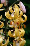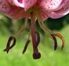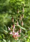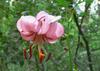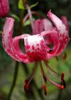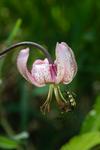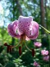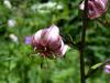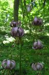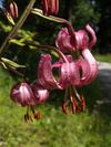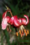 Gatunek występujący na przeważającej części Europy z wyjątkiem Półwyspu Skandynawskiego i Wysp Brytyjskich – od południowej Hiszpanii po Kaukaz i Ural. Północna granica zasięgu przechodzi przez Polskę. Granica południowa biegnie przez Korsykę, Apeniny i góry Półwyspu Bałkańskiego. W Azji zasięg występowania ciągnie się przez centralną część kontynentu przez wschodnią i zachodnią Syberię po północną Mongolię i prowincję Sinciang w Chinach oraz okolice jeziora Bajkał i Jakucka na Syberii. Gatunek introdukowano we wschodnich prowincjach Kanady. W Polsce spotykana często w Sudetach i Karpatach, na niżu bardzo rzadka, zwłaszcza w części północno-zachodniej. Rozwój Bylina. Geofit cebulowy. Roślina kwitnie od końca czerwca do lipca lub połowy sierpnia. Kolorowe plamki na listkach okwiatu spełniają funkcję wskaźników, które nakierowują owady w odpowiednie miejsce, w fazie czynności prowadzących do zapylenia kwiatu. Roślina wabi owady nie tylko dużymi i barwnymi kwiatami, ale również zapachem. Szczególnie intensywnie pachnie wieczorem i nocą. Dostęp do nektaru mają tylko owady długotrąbkowe, dlatego kwiaty lilii zapylane są tylko przez motyle dzienne i nocne, głównie z rodziny zawisakowatych, m.in. przez fruczaka gołąbka. Ponieważ okwiat jest gładki i śliski kwiaty zapylane są głównie przez owady w locie. Jeśli jednak z jakichś powodów (np. długotrwała zła pogoda) nie dojdzie do zapylenia krzyżowego, roślina dość łatwo może zapylić się własnym pyłkiem (słupek może zmienić położenie w kwiecie i tak zbliżyć znamię do pręcików, że dojdzie do autogamii) i również wytworzyć nasiona, jednak gorszej jakości. Nasiona rozsiewane są przez wiatr. Kiełkowanie jest hipogeiczne, powolne. Jesienią siewka formuje podziemną, drobną cebulę. W kolejnym roku młoda roślina rozwija nad powierzchnią tylko pojedynczy liść. Gatunek rozmnaża się także wegetatywnie za pomocą cebulek powstających u nasady starej cebuli, a w ogrodnictwie często także z sadzonek łuskowych (łusek cebulowych). Rozmnażanie wegetatywne odgrywa mniejszą rolę w uprawie tego gatunku niż siew nasion. Siedlisko Rośnie w miejscach półcienistych, na glebach piaszczysto-gliniastych i gliniastych świeżych, zasobnych w substancje mineralno-próchniczne, o zróżnicowanym składzie granulometrycznym – od piasków luźnych, piasków gliniastych mocnych po glinę ciężką, o odczynie obojętnym lub zasadowym. Spotykana w rzadkich, widnych lasach, głównie grądach (zwłaszcza subkontynentalnym) i buczynach, zwłaszcza nawapiennych, storczykowych, poza tym w dąbrowach świetlistych, kwaśnych dąbrowach podgórskich i borach mieszanych, a poza lasami w zaroślach, wśród ziołorośli i traworośli. W górach w wyższych położeniach w zaroślach kosodrzewiny oraz na halach, na trawiastych miejscach wśród skał. W Alpach dochodzi do wysokości 2650 m n.p.m. W typologii siedlisk leśnych uznawana jest za charakterystyczną dla lasu mieszanego górskiego świeżego (LMGśw) i lasu mieszanego świeżego (LMśw). Fitosocjologia W klasyfikacji zbiorowisk roślinnych Europy Środkowej gatunek charakterystyczny dla O. Fagetalia. Genetyka Liczba chromosomów 2n=24.