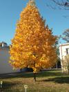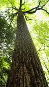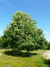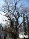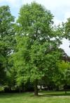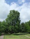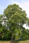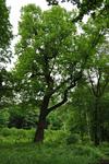 Pokrój u młodych okazów korona jest wąska i stożkowata, u dorosłych bardzo wyniosła, jednak niezbyt szeroka, w stanie bezlistnym bardzo rzadka, a po rozwinięciu się liści bardzo gęsta i zwarta, dająca głęboki cień. Dorasta nawet do 60 m, w Polsce tylko około 25–35 m. Pień gruby i prosty, prawie zawsze pojedynczy. Średnica: do 3 m. Konary grube i niezbyt długie, w dolnej części korony często prawie poziome, wyżej ukośnie wzniesione.