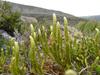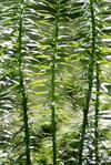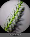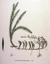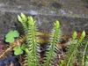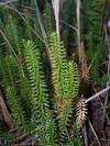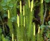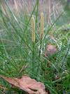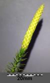 Jest podziemny. Początkowo ma kształt maczugowaty, potem jest dyskowaty. W postaci dojrzałej dysk jest siodlasty z powodu podłużnego wgłębienia. Pędy Płożące naziemne lub częściowo ukryte w ściółce, długie do kilku metrów (ich wzrost jest potencjalnie nieograniczony). Rozgałęziają się tworząc nieliczne pędy płożące, które zakorzeniają się w dość regularnych odstępach, oraz liczne pędy wzniesione. Te drugie rozgałęziają się widlasto raz do trzech razy i osiągają 10–30 cm długości. Liście Asymilacyjne (trofofile) są ustawione na pędach skrętolegle lub okółkowo. Osiągają 5–11 mm długości i 1–1,5 mm szerokości. Są wydłużone, wąskie, stopniowo wyciągnięte w ostry kończyk, na brzegach z krótkimi, skośnie ustawionymi, wąskimi ząbkami, czasem całobrzegie. Na pędach płożących liście są luźno ustawione, w górę zakrzywione, na pędach wzniesionych są odstające. Ponieważ w okresie spoczynku liście są krótsze i przylegają do pędu chroniąc merystem wierzchołkowy – na pędach wyraźne zaznaczone są przyrosty roczne dzięki różnicom w wielkości i ustawieniu trofofili. Kłosy zarodnionośne Tworzą się pojedynczo na szczytach pędów wzniesionych, są siedzące, walcowate, ku górze nieco się zwężają i na szczycie są zaostrzone. Osiągają 2–3, rzadziej 4 cm długości i 3–4, rzadziej 5 mm szerokości. Sporofile osiągają 3 mm długości i 3 mm szerokości. U podstawy są sercowate, mają kształt trójkątnojajowaty do wydłużonojajowatego. Na szczycie wyciągnięte w kończyk odgięty na zewnątrz. Brzeg jest biały, błoniasty, poszarpany lub ząbkowany. Początkowo sporofile są żółtawozielone, później jasnobrunatne. Zarodnie są nerkowate, 3× krótsze od sporofili. Otwierają się na górnej (doosiowej) krawędzi. Zarodniki w zarysie są trójkątnokoliste i osiągają zwykle od 35,5 do 39 μm, rzadko od 33 do 46 μm średnicy. Na biegunie proksymalnym znajduje się z trójdzielny szew. Skulptura powierzchni jest siatkowata, z dużymi oczkami w kształcie nieregularnych wieloboków po stronie dystalnej, zredukowanymi i słabiej widocznymi na biegunie proksymalnym.