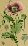 Mak lekarski wywodzi się z Azji Mniejszej, z zachodniej części basenu Morza Śródziemnego i z Afryki Północnej. Być może pochodzi od gatunku P. setigerum, w stanie dzikim nie występuje, znany już był w starożytności. Udokumentowane relacje stosowania opium w uśmierzaniu bólu pochodzą z Azji Mniejszej ok. 1500 roku p.n.e. Uprawę maku w celu uzyskiwania opium prowadzi się od ok. 2 tys. lat. W XIX i XX wieku dokonano wyizolowania z opium licznych alkaloidów, opisania ich własności, a także opracowania półsyntetycznych lub syntetycznych pochodnych związków chemicznych, często o znacznie większej skuteczności. Morfina i kodeina to najważniejsze i stosowane na najszerszą skalę alkaloidy uzyskiwane z maku lekarskiego. Mają działanie przeciwbólowe, przeciwkaszlowe i przeciwbiegunkowe.
