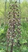 Bylina. Jest to jedna z najwcześniej kwitnących roślin, jej grube pąki wyłaniające się z gruntu można dostrzec już w marcu. Kwitnie do maja, zakwita jeszcze przed rozwojem liści. Liście i kwiaty wydzielają charakterystyczny, nieprzyjemny zapach. Owoce rozsiewane są przez wiatr, dzięki puchowi kielichowemu tworzącemu aparat lotny nieraz na duże odległości. Siedlisko: zasiedla bardzo różnorodne środowiska. Najbujniej i najobficiej jednak rozwija się w wilgotnych zaroślach nadrzecznych, nad brzegami potoków, w rowach, wąwozach, w przejrzystych i wilgotnych lasach. W niektórych miejscach tworzy duże, jednogatunkowe skupiska. W Tatrach spotykany jest do wysokości 1700 m n.p.m. Fitosocjologia: jest gatunkiem charakterystycznym dla All. Adenostylion alliariae i Ass. Petasitetum albi. Liczba chromosomów 2n= 60.