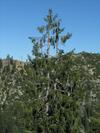 Rozwój Fanerofit. Roślina jednopienna, wiatropylna. Pochodzi z regionów o znacznych opadach śniegu, a jego zwisający pokrój stanowi naturalny mechanizm przeciwdziałający zaleganiu śniegu na gałęziach. Siedlisko Rośnie w lasach gór Siskiyou na wysokości od 1000–2300 m n.p.m.