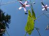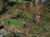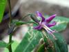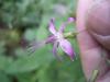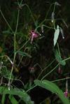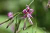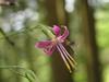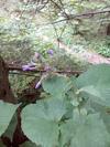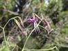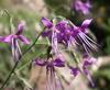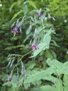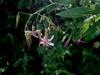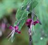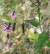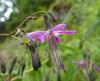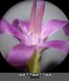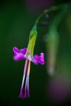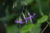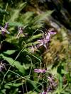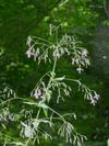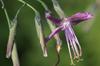 Kwiaty drobne kwiaty zebrane w długie, walcowate koszyczki zwisające na długich szypułkach. Koszyczki te z kolei zebrane są w wiechę. W koszyczkach tylko kilka kwiatów (przeważnie 5). Okrywa koszyczków o długości 12–13 mm i 5–7 mm średnicy i składająca się z 6–10 listków. Jest naga i dość często podbarwiona na fioletowo. Języczkowe kwiaty przenętu mają długie płatki wystające daleko poza okrywę, wskutek czego koszyczki bardzo przypominają swoim wyglądem pojedyncze kwiaty. Płatki kwiatów fioletowopurpurowe, puch kielichowy w postaci pojedynczych, śnieżnobiałych włosków. Słupek jednokomorowy, dolny. Pręciki zrośnięte w rurkę wokół słupka, którego dwudzielne, spiralne znamię wystaje wysoko powyżej pylników. Przedprątne kwiaty kwitną od lipca do sierpnia, zapylane są przez błonkówki.