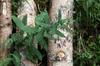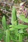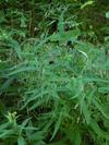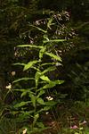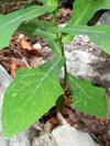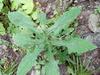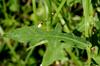 Liście dolne liście mają podłużnie jajowaty kształt (szerszy w górnej części liścia) i posiadają szerokie zatokowate wycięcia. Ich nasady zbiegają w krótki ogonek. Liście środkowe i górne są nie tylko dużo mniejsze, ale mają znacznie różniący się od liści dolnych kształt; są lancetowate lub podługowate i brzegi mają tylko nieznacznie wycięte, lub są tylko piłkowane. Są siedzące i mają sercowate nasady. Wszystkie liście są cienkie i nagie, na dolnej stronie sinozielone.