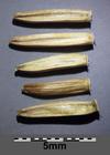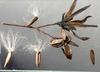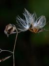 Owoc niełupka, jasnobrunatnego koloru, wydłużona i bocznie spłaszczona, słabo żeberkowana, bez dzióbka, z białym puchem kielichowym. Roślina wiatrosiewna.