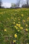 Rośnie na łąkach, w zaroślach, widnych lasach i ich skrajach, na skarpach przy drogach i liniach kolejowych, nierzadko tworząc gęste i rozległe płaty. Preferuje gleby zasobne w węglan wapnia, przy czym mogą mieć one bardzo różną strukturę – od szkieletowych gleb na skałach wapiennych, poprzez wydmy piaszczyste, po gleby rozwijające się na glinach zwałowych. Wilgotność i odczyn gleb są zróżnicowane (ten drugi wynosi od 5 do 8 pH), przy czym gatunek ten nie rozwija się na glebach silnie zakwaszonych. Może rosnąć zarówno na ciężkich glinach, jak i na glebach bardzo przepuszczalnych. Częściej występuje na glebach ubogich (nawożenie azotem osłabia kwitnienie i kiełkowanie). Na wybrzeżach zasiedla wydmy i klify, jednak poza zasięgiem wód zasolonych. Źle znosi silne zacienienie i nie toleruje stagnowania wód. Ma niezbyt wielkie wymagania wilgotnościowe (mniejsze niż pierwiosnek wyniosły) i generalnie dobrze znosi susze. Rośliny przeżywają nawet jeśli okresowo ich rozety więdną, przy czym susze w czasie kwitnienia wpływają jednak niekorzystnie na skuteczność zawiązywania nasion. Podobnie niekorzystny wpływ mają późne, majowe przymrozki mogące uszkadzać kwiaty. Gatunek ma zasięg eurosyberyjski. Występuje w Europie sięgając na północy do środkowej Szwecji i Finlandii, obecny jest na Wyspach Brytyjskich, ale brak go w Islandii. W południowej Europie zwarty zasięg gatunku sięga do północnej Hiszpanii (w środkowej części tego kraju pierwiosnek obecny jest na izolowanych stanowiskach), środkowych Włoch i północnej Grecji. Na wschodzie Europy zwarty zasięg obejmuje środkową Rosję po Ural. Poza tym gatunek rośnie wyspowo na Krymie, Kaukazie, w Azji w północnym Iranie, na bardzo rozproszonych obszarach na Syberii sięgając Amuru, w Kazachstanie i Kirgistanie. W północnej Afryce rósł w Algierii, ale tam wymarł. Jako gatunek introdukowany rośnie w północno-wschodniej części Stanów Zjednoczonych i południowo-wschodniej oraz południowo-zachodniej części Kanady. W północnej części zasięgu gatunek rośnie na nizinach (w Skandynawii zwykle nie przekracza 100 m n.p.m.), natomiast w południowej – na obszarach górskich. W Pirenejach sięga do 2300 m, w Alpach do 2100, w Apeninach do 1500 m n.p.m. W Polsce poza obszarami górskimi gatunek jest rozpowszechniony, lokalnie bywa rzadszy, np. w zachodniej części województwa dolnośląskiego, w łódzkim, na południu mazowieckiego.