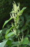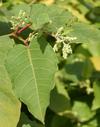 Bylina o zdrewniałych pędach, geofit ryzomowy. Siedlisko: zarośla nadrzeczne, łęgi, przydroża, nasypy kolejowe i inne siedliska ruderalne. Roślina ruderalna. Występuje w 5 strefie mrozoodporności. Kwitnie późno – od września do października (według innych źródeł w lipcu). Jest rośliną miododajną. Roślina posiada kłącze i często tworzy rozłogi, za pomocą których rozmnaża się wegetatywnie, tworząc gęste, jednogatunkowe łany.