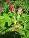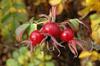 Surowiec zielarski Pseudoowoce czyli hypancja róż wraz z orzeszkami (Fructus Rosae cum seminibus lub Rosae pseudofructus cum seminibus), bez orzeszków (Fructus Rosae sine seminibus lub Rosae pseudofructus sine seminibus), ewentualnie także same orzeszki (Semina Rosae lub Fructus Rosae). Róża pomarszczona należy do gatunków róż, których owoce i hypancja są zbierane do celów leczniczych stosunkowo często. Sproszkowane owoce właściwe wchodzą w skład tabletek Litozin. Owoce rzekome róż znajdują się w takich mieszankach ziołowych jak: Regulavit, Pyrotex, Tussiflos. Wyciąg z owoców znajduje się w płynach Cholesol, Diges-Tonic, Neocardina, w tabletkach i preparatach: Tiliros, Acerola, Rosagran, Biogran B. Zbiór i suszenie Owoce rzekome zbiera się, gdy dojrzeją, ale jeszcze zanim zrobią się miękkie. W Europie Środkowej zbioru dokonuje się w drugiej połowie sierpnia i często powtarza po drugim wysypie owoców w drugiej połowie września. Suszenie ich jest dość trudne – trzeba je rozdrobnić, przez pierwsze 10 minut należy trzymać je w temp. ok. 100 °C, by szybko zniszczyć enzymy rozkładające witaminę C, potem suszyć w temp. ok. 50–60 °C. Działanie Surowce zielarskie z róży ze względu na wysoką zawartość witamin, zwłaszcza C, działają ogólnie wzmacniająco. Zalecane są do stosowania podczas rekonwalescencji, przy osłabieniu, zmęczeniu, w stresie, przy przeziębieniu i w ciąży. Flawonoidy działają słabo moczopędnie, żółciopędnie, przeciwutleniająco i stabilizują ściany naczyń włosowatych. Zawarty w owocach właściwych galaktolipid (GOPO) działa przeciwzapalnie i przeciwreumatycznie. Działanie przeciwzapalne wiąże się z hamowaniem chemotaksji leukocytów oraz obniżeniem stężenia w osoczu kreatyniny i białek CRP. Działanie przeciwzapalne jest porównywalne do niesteroidowych leków syntetycznych (np. kwasu acetylosalicylowego), przy czym preparaty z róży nie powodują efektów niepożądanych. Działanie przeciwutleniające preparatów z róży jest zasługą dużej zawartości witaminy C, karotenoidów i polifenoli. Do wygaszenia w organizmie rodników hydroksylowych wystarcza dawka 0,05 mg sproszkowanego ekstraktu z owoców. Świeże owoce rzekome działają ochronnie na błonę śluzową żołądka i przeciwwrzodowo. Preparaty z owoców stosowane są pomocniczo do leczenia różnych schorzeń wątroby, nerek i przewodu pokarmowego.