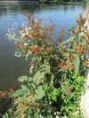 Bylina, hemikryptofit, hydrofit. Kwitnie od lipca do sierpnia. Występuje na brzegach stawów, rzek i rowów. W klasyfikacji zbiorowisk roślinnych gatunek charakterystyczny dla Cl. Phragmitetea.