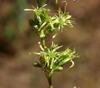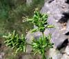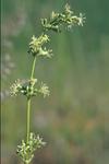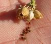 Kwiaty jednopłciowe, liczne, drobne, zebrane w wąską wiechę. Wyrastają na szypułkach do 7 mm długości w kątach trójkątnych i błoniastych przysadek. Kielich zrosłodziałkowy, zakończony jest 5 ząbkami o długości do 1 mm. Płatki są żółtozielone, do 5 mm długie, niepodzielone, nieznacznie wystają z kielicha. Pręcików w kwiatach męskich jest 10, szyjki słupka w kwiatach żeńskich są 3.