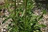 Liście skupione częściowo w różyczkę, górne na łodydze siedzące, do 3 cm długości lancetowate lub równowąskolancetowate. Liście dolne, skupione w rozecie przyziemnej s a długoogonkowe i wąskołopatkowate i lancetowate.