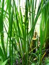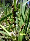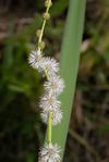 Helofit. Występuje w szuwarach mulistych jezior i stawów. Preferuje glebę bogatą w składniki odżywcze. Jest gatunkiem charakterystycznym dla zespołu roślinności Sparganietum erecti.