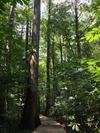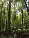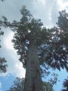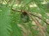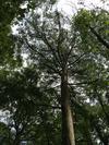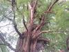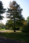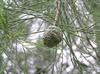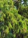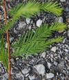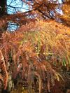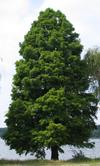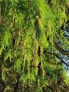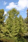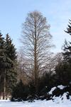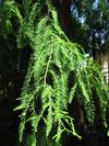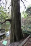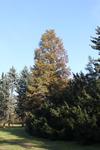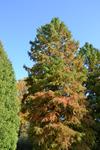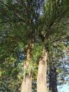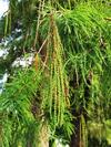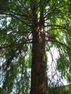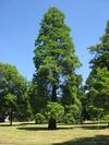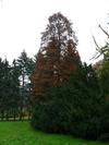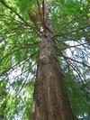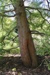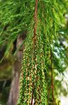 Pień u nasady bardzo szeroki, szybko zwężający się i wyżej prosty. Konary u nasady wznoszą się nieco w górę, dalej lekko się zwieszają. Po 10 latach w Polsce osiąga wysokość 5 i szerokość 2 metrów. Maksymalne 25 metrów, w ojczyźnie 50. Drzewo jednopienne. Kora czerwonobrązowa lub bladobrunatna, włóknista, łuszczy się podłużnymi pasami.