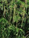 Kwiaty męskie licznie zebrane na końcach zeszłorocznych długopędów, żółtawe albo purpurowe. Szyszki żeńskie mają długość 1–3 cm, są kuliste lub nieco podłużne, składają się z niewielu łusek.