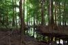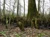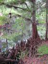 Korzenie na okresowo zalewanych bądź trwale podmokłych obszarach tworzy tak zwane korzenie oddechowe (pneumatofory, inaczej kolana oddechowe). Są to zgrubienia na korzeniach wyrastające powyżej poziomu gleby lub wody w odległości do kilkunastu metrów od pnia. Dostarczają one niezbędnej ilości tlenu do systemu korzeniowego.