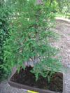 Pokrój korona młodych drzew wąska, stożkowata, później coraz bardziej okrągło sklepiona i na wierzchołku prawie zawsze zaokrąglona. Pędy jednoroczne niezwykle cienkie, czerwonawe, późno pokrywają się liśćmi.