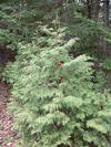 Biotop, wymagania Gatunek rośnie na terenach nizinnych, w dolinach rzek, zwykle na wysokościach od 150 do 600 m n.p.m. Preferuje podmokłe gleby wapienne, najlepiej rośnie w klimacie chłodnym i wilgotnym. Tworzy lasy jednogatunkowe lub mieszane razem z jodłą balsamiczną, świerkiem czarnym, świerkiem czerwonym, modrzewiem amerykańskim, choiną kanadyjską, sosną wejmutką, brzozą żółtą i in. Wytrzymały na niskie temperatury i odporny nawet na duże zanieczyszczenia powietrza. Rośnie w miejscach nasłonecznionych, jak i w cieniu. Dobrze znosi przycinanie.