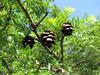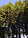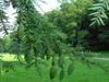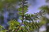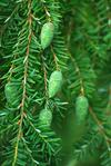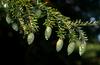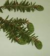 PokrójKorona drzewa bardzo nieregularna, dość szeroka, z gęstymi gałęziami; osiąga wysokość około 30 metrów; pędy szczytowe rozwinięte są niewyraźnie, a wierzchołki pędów szczytowych i bocznych – zwisające; dolne gałęzie bywają bardzo grube. pień: kora chropowata i pomarszczona, szaro-brązowa z wiekiem przechodząca w czerwono-brązowy kolor liście: igły spłaszczone, spiralnie rozmieszczone, wykręcone u podstawy, układające się w dwa rzędy po obu stronach gałązki; igły osiągają 8–15 mm długości, 2 mm szerokości; ciemnozielone z wierzchu, z niebiesko-białymi porami na spodzie kwiaty: kwitnie od kwietnia do maja szyszki: stożkowato-owalne, o 15–22 mm długości i 8–10 mm szerokości; w porze dojrzewania ciemnobrunatne, z łuskami o słabo zgrubiałych brzegach