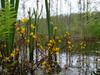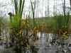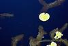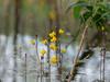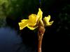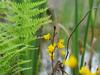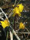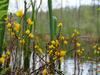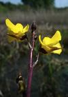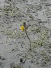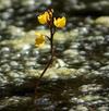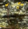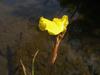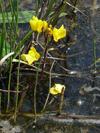 Kwiaty żółte, obupłciowe, grzbieciste, wyrastające na szypułce 2–3 razy dłuższej od łuskowatych przysadek. Zebrane są w groniasty, złożony z 4–12 (czasami nawet do 24) kwiatów. Wyrasta nad powierzchnię wody na szypułce o długości 8–12 mm. Korona ma średnicę 13–20 mm i posiada stożkowatą, podłużną ostrogę dłuższą od dolnej działki kielicha. Złocistożółta górna warga korony jest dłuższa od zamykającej gardziel kwiatu wydętej wargi dolnej. Wewnątrz korony 2 pręciki zrośnięte pylnikami i 1, górny słupek.