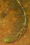 Pokrój roślina swobodnie unosząca się w toni wodnej, nie posiada systemu korzeniowego. Blisko powierzchni wody znajduje się tylko podczas kwitnienia. Tuż pod łodygą kwiatostanu wytwarza chwytniki, za pomocą których przyczepia się do podłoża, gdy znajduje się w miejscach płytszych. Pęd długości ok. 1 m, w większości pod wodą, ponad lustro wystaje tylko niewielki fragment zakończony skąpokwiatowym kwiatostanem. Pędy osiągają długość 30–100(200) cm, międzywęźla 3–10 mm. Tworzy także cienkie, nitkowate i skręcone pędy powietrzne o długości do 18 cm. Pokryte są łuseczkowatymi listkami i służą do wymiany gazowej.