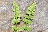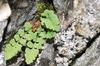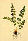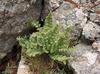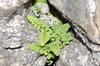Bylina, hemikryptofit o wysokości do 20 cm. Liście podwójnie pierzaste o okrągłodeltoidalnych odcinkach. Pod liśćmi zarodnie otoczone zawijką podzieloną na włosowate odcinki. Zarodniki dojrzewają w sierpniu. Pod ziemią krótkie kłącze. Rośnie na miejscach nasłonecznionych, w szczelinach skał, zarówno wapiennych, jak i granitowych. Liczba chromosomów 2n = 156.