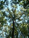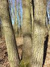 Pień mocny, rośnie prosto, w dolnej części z niezbyt licznymi gałęziami. Kora gruba, szorstka, koloru popielatoszarego, wyraźnie bruzdowana, często odpadająca małymi płytkami.